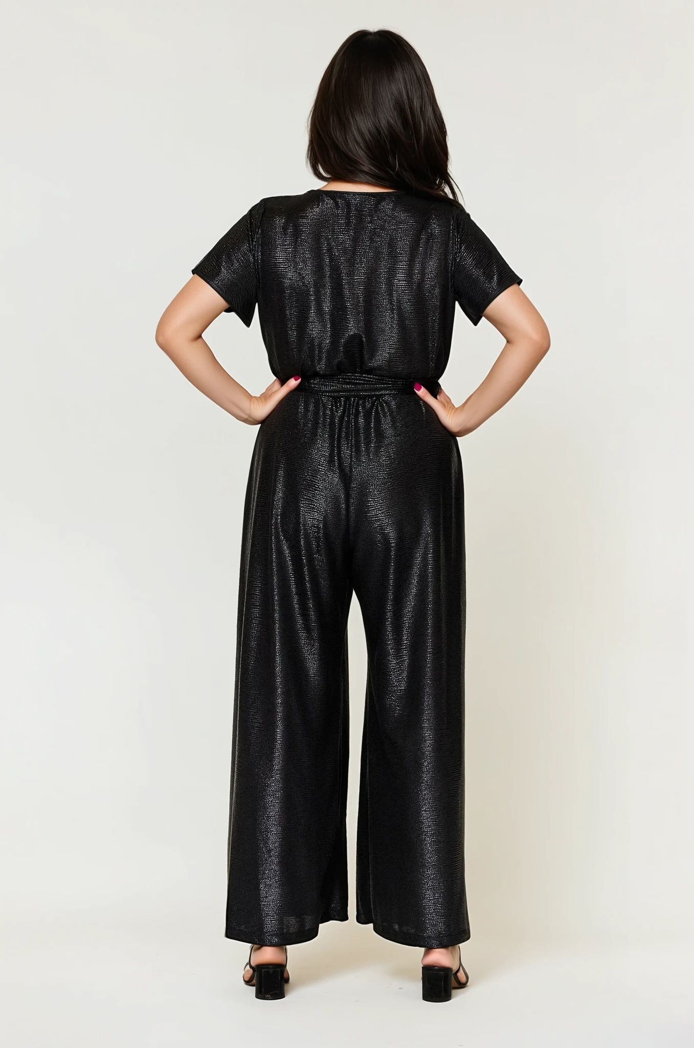 It is a glamorous option to the everyday pantsuit that's on trend with a wide leg pant.